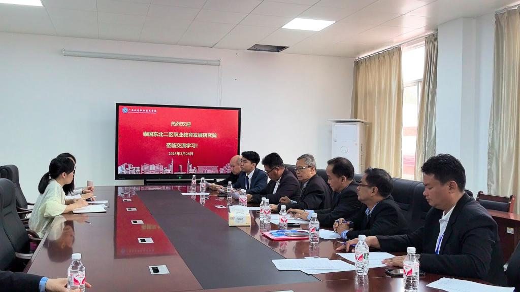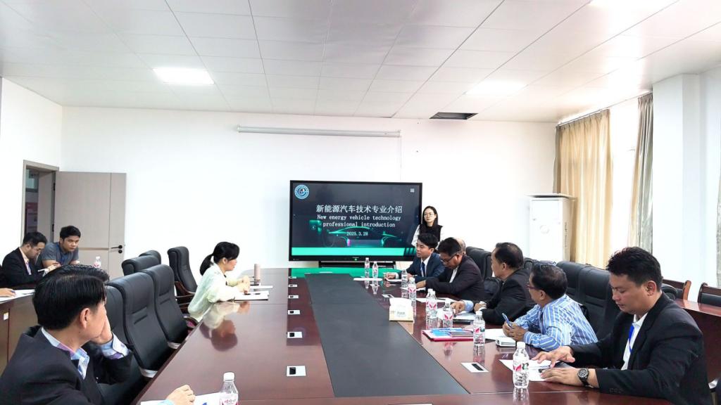 3月28日上午,泰国东北二区职业教育研究院代表团一行18人莅临万象城官网访问交流。汽车工程学院与代表团围绕新能源汽车技术专业国际交流生联合培养项目召开专题洽谈会。汽车工程学院副院长莫荣珍主持会议,学院新能源汽车专业教师团队代表参会。