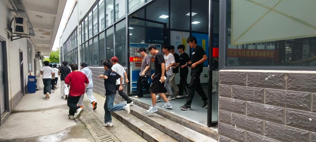 演练正式开始前,由实训管理员及实训指导教师负责落实安全逃生注意事项及逃生路线讲解。演练中,安全员开启模拟报警喇叭,各岗位人员迅速进入状态,学生在老师指挥下,有序按照安全通道撤离。从故障模拟报警、紧急疏散到集合清点,各环节衔接紧密、高效有序,清点员的快速人数统计汇报,都为演练的成功开展奠定基础。此外,充分的安全教育、明确的岗位职责划分等保障措施,也为演练的顺利进行保驾护航。