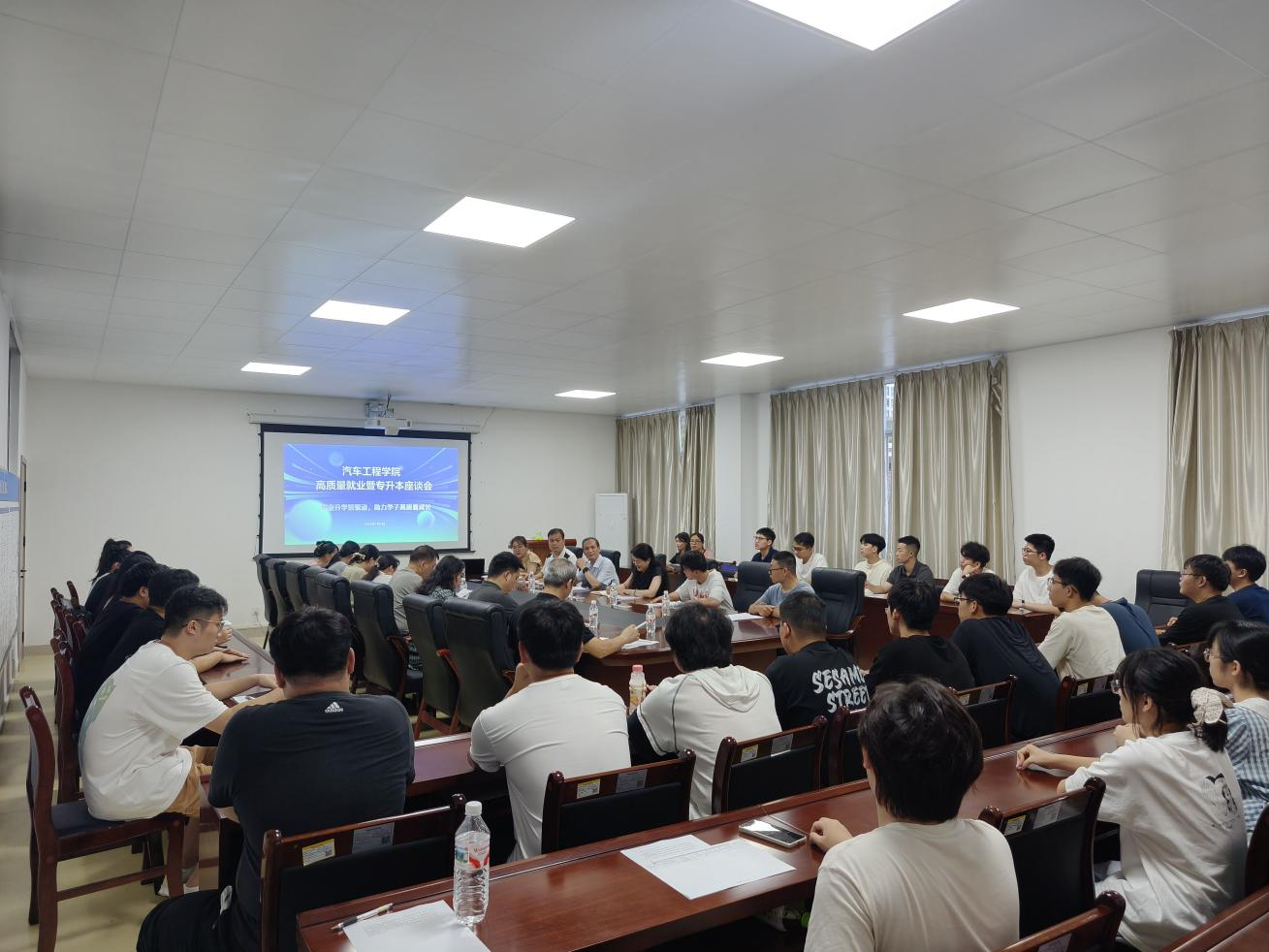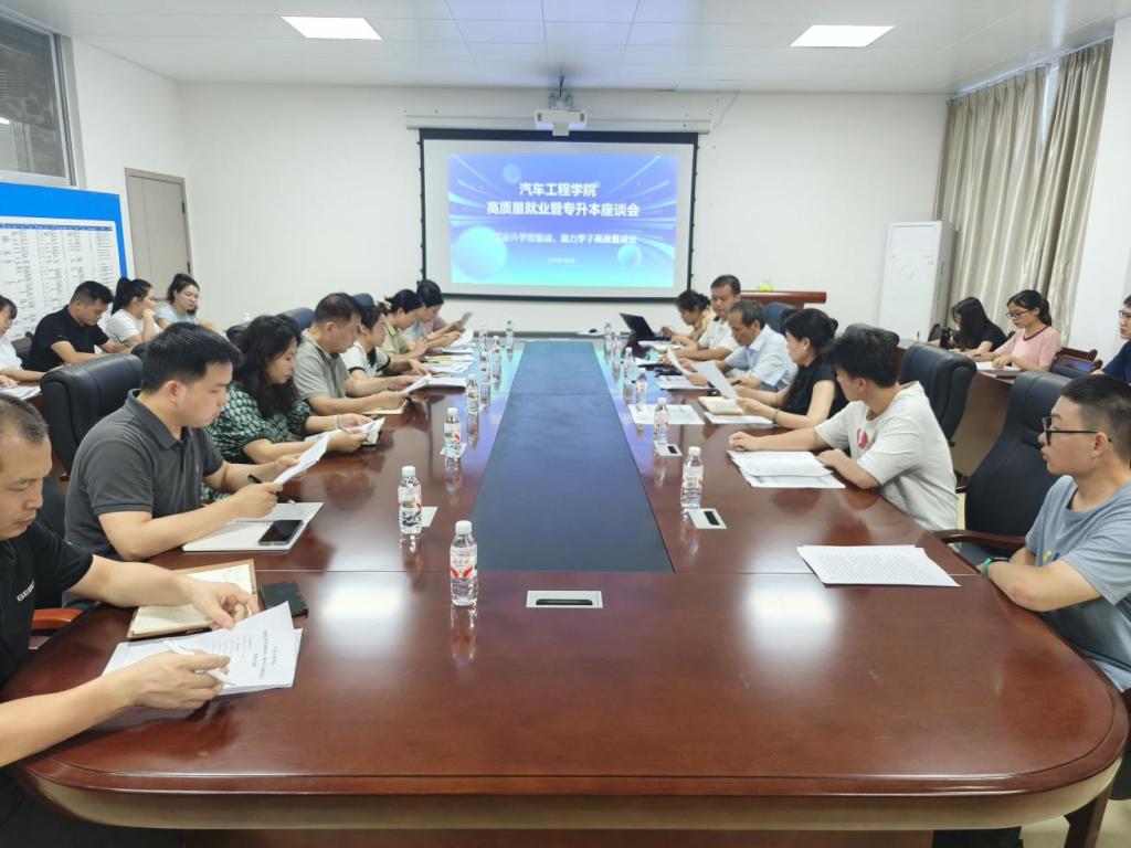 7月3日,汽车工程学院以“就业升学双驱动,助力学子高质量成长”为主题,在学院会议室召开专题座谈会。学校副校长黎盛寓、学院班子成员、各教研室主任、团队负责人、辅导员及学生代表共同围绕毕业生就业与专升本升学展开深度探讨,凝聚共识,共谋发展。