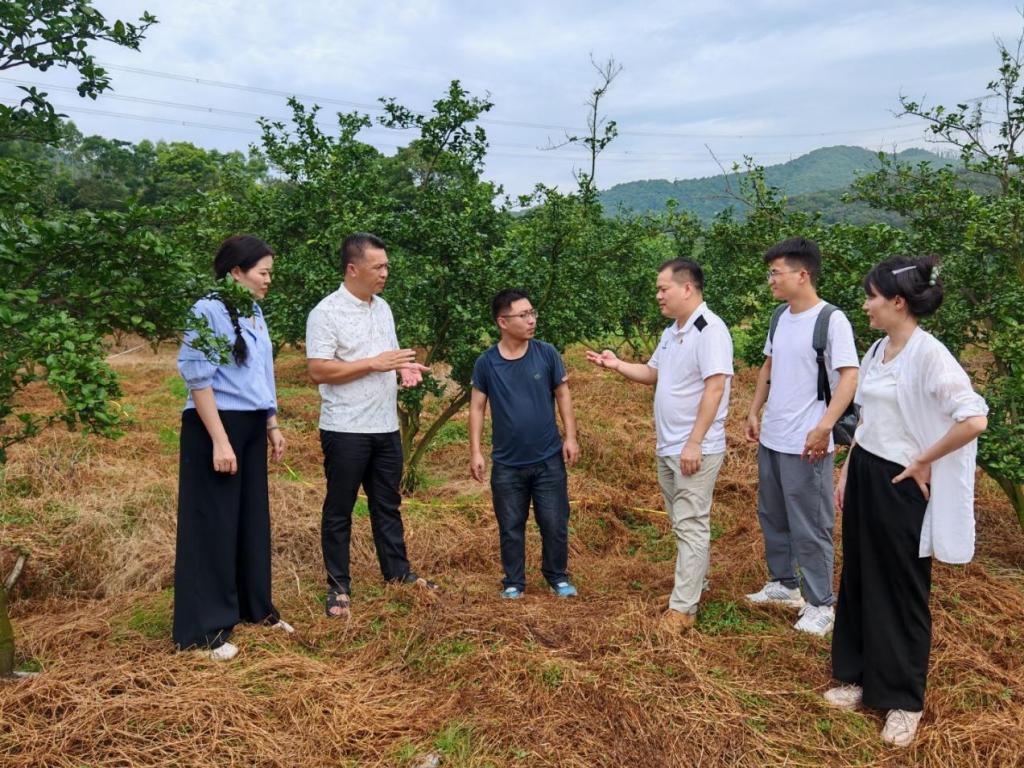 调研组首先与盘古村民委员会召开了专题调研座谈会。双方围绕盘古村特色产业发展现状、瓶颈问题及未来规划进行了深入交流。村支书梁振强详细介绍了本村砂糖橘种植、优质大米生产以及正在拓展的韭苔种植等产业情况,并表达了希望借助学院力量拓宽农产品销路的意愿。座谈会后,调研组实地考察了盘古村砂糖橘种植基地及优质大米和韭苔种植规划用地。