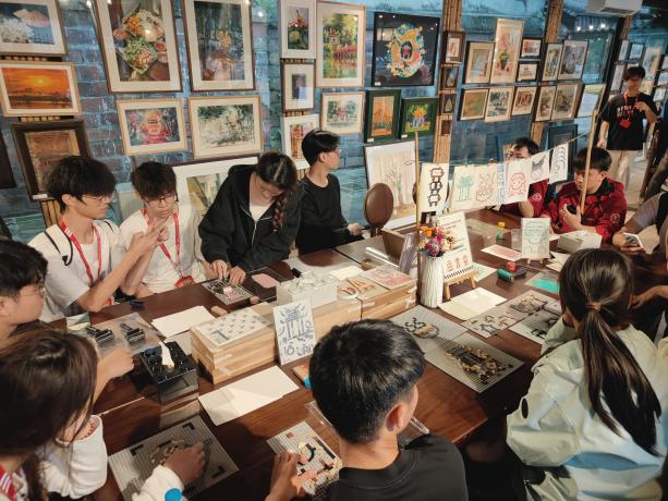 研学团研学的第二站——河内百科职业大专。在河内百科职业大专,该校副校长阮进龙博士对研学团表示热烈欢迎,祝愿研学团成员在越南研学期间不仅能学会知识,也能感受越南的历史文化,更能缔结真挚的友谊,促进中越两国的友好关系。研学团重点参观了该校汽车系的汽车实践车间,双方就实训设备、学生的实习和就业进行了深入交流。此外,两校青年还进行音乐与体育的交流互动:同唱一首中文歌,用歌声传递中越青年的真善美;举行中越羽毛球混合友谊赛,场内“跨国搭档”配合默契,场内加油声不断。这场跨越国界的音乐与体育交流,不仅展现了两国青年的活力与风采,更为两国的职业教育合作注入热血与温度。赛后,两校学生共同体验传统纸画,将文化交融的印记永久留存。