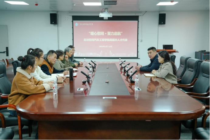 2026年1月13日,学校党委书记黄小敬走进汽车工程学院,走访慰问学院高层次人才代表,向各位代表致以诚挚的节日问候和美好的新春祝福。汽车工程学院领导班子陪同慰问,共同参与座谈交流。