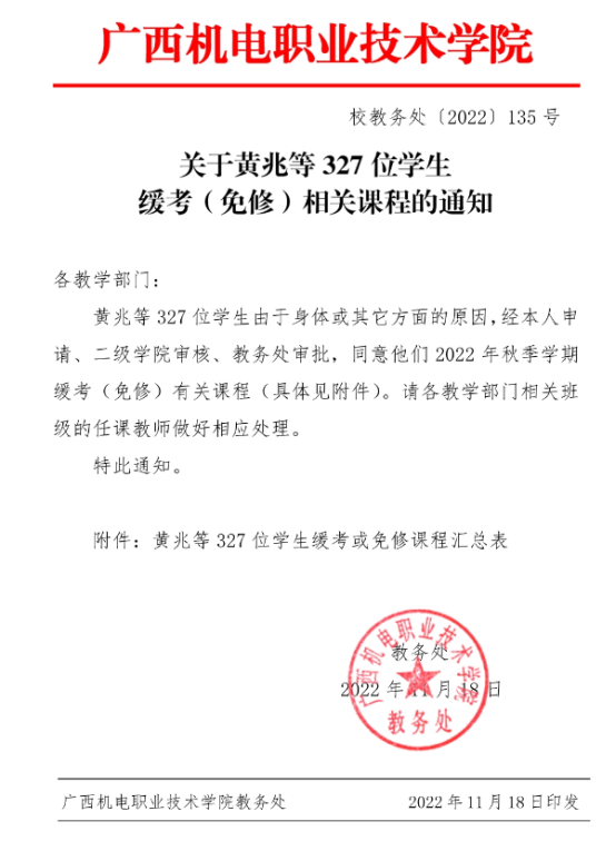 关于黄兆等327位学生缓考(免修)相关课程的通知