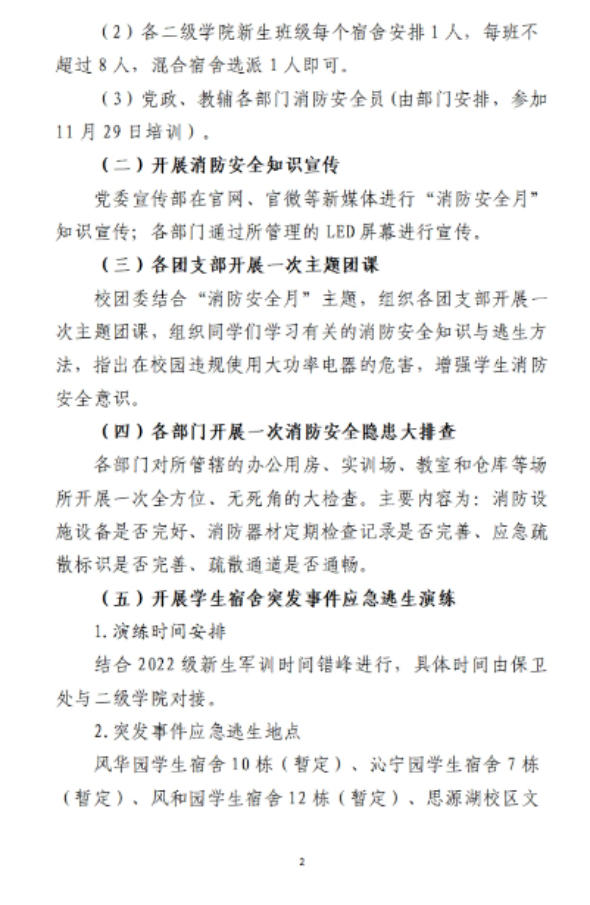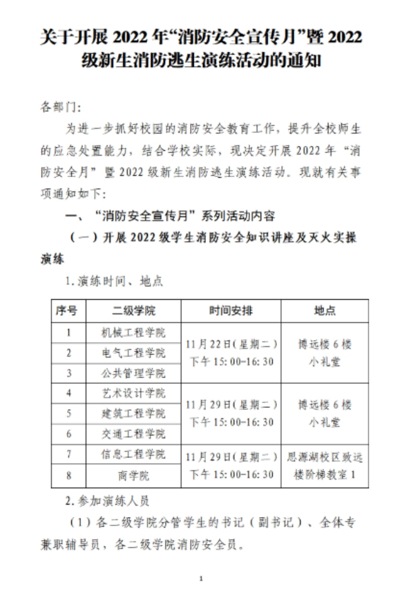 关于开展2022年“消防安全宣传月”暨2022级新生消防逃生演练活动的通知