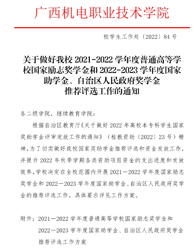 附件:2021-2022学年度普通高等学校国家励志奖学金和2022-2023学年度国家助学金、自治区人民政府奖学金推荐评选工作方案.zip