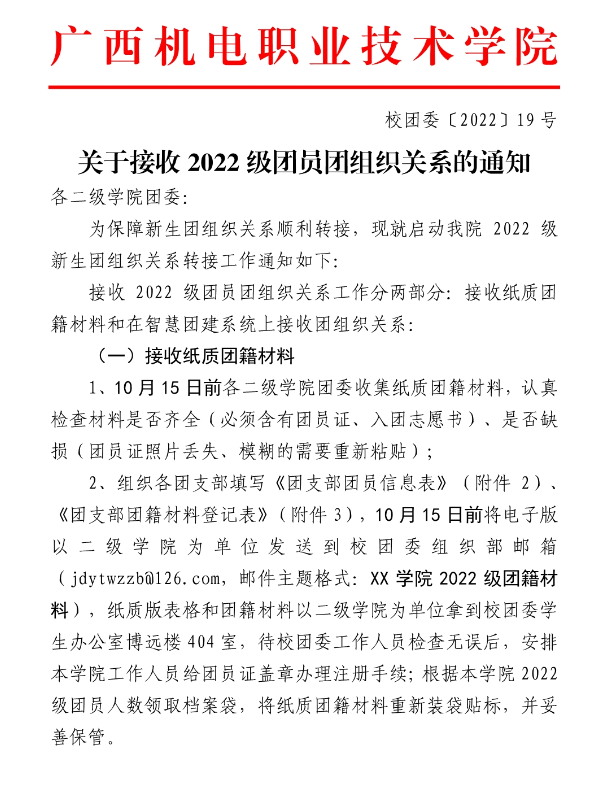 关于接收2022级团员团组织关系的通知