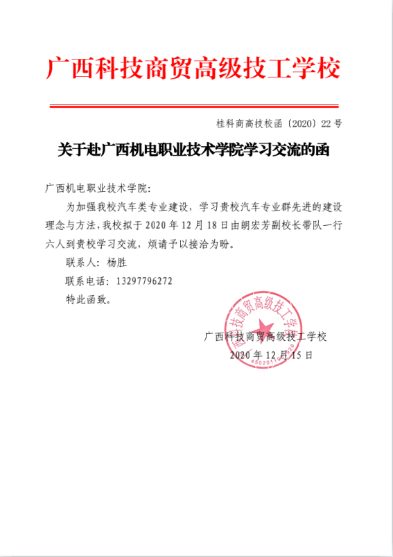 广西科技商贸高级技工学校赴awc77万象城官网学习交流函