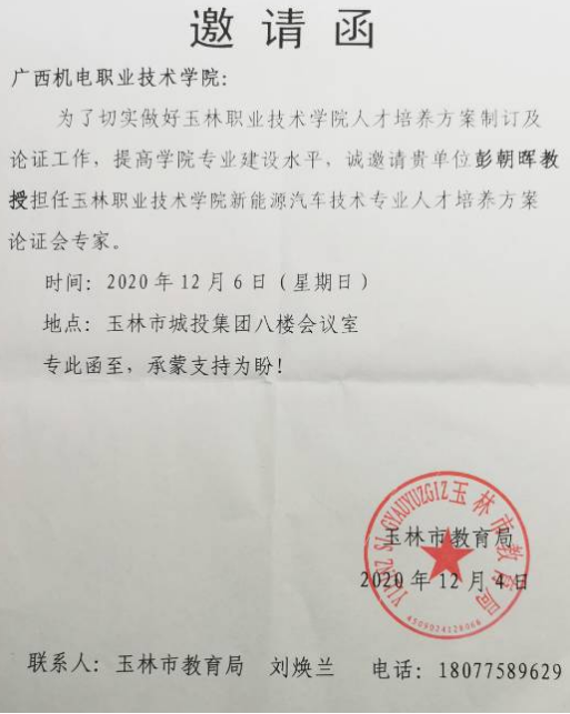 年成果负责人受玉林市教育局邀请,对筹建的玉林职业技术学院新增专业
