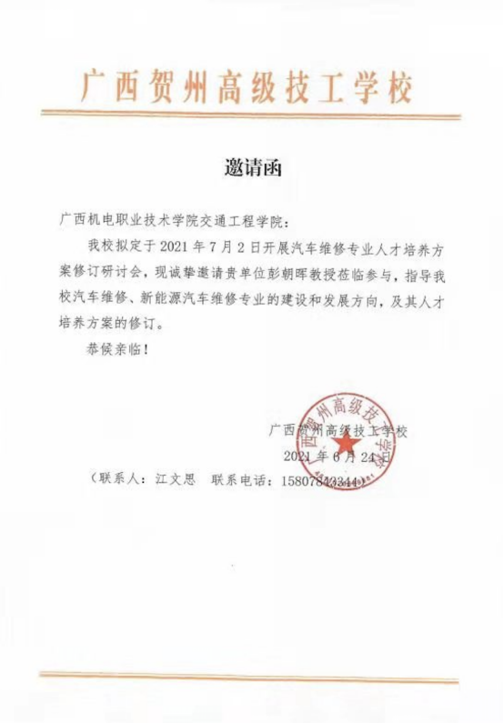 广西贺州高级技工学校专业建设及人才培养方案指导邀请函