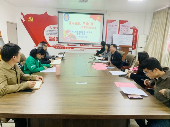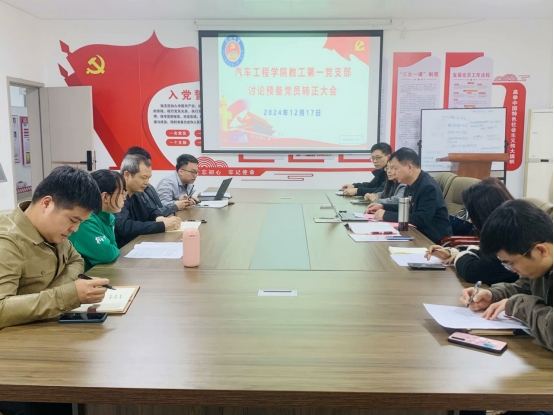 为进一步加强党员队伍建设,增强党员队伍的生机和活力。2024年12月17日,汽车工程学院教工第一党支部召开党员大会,讨论韦举成、潘昱忱同志转为正式党员问题暨支部书记讲党课。支部书记何勇主持会议,第一支部党员、预备党员参加会议。