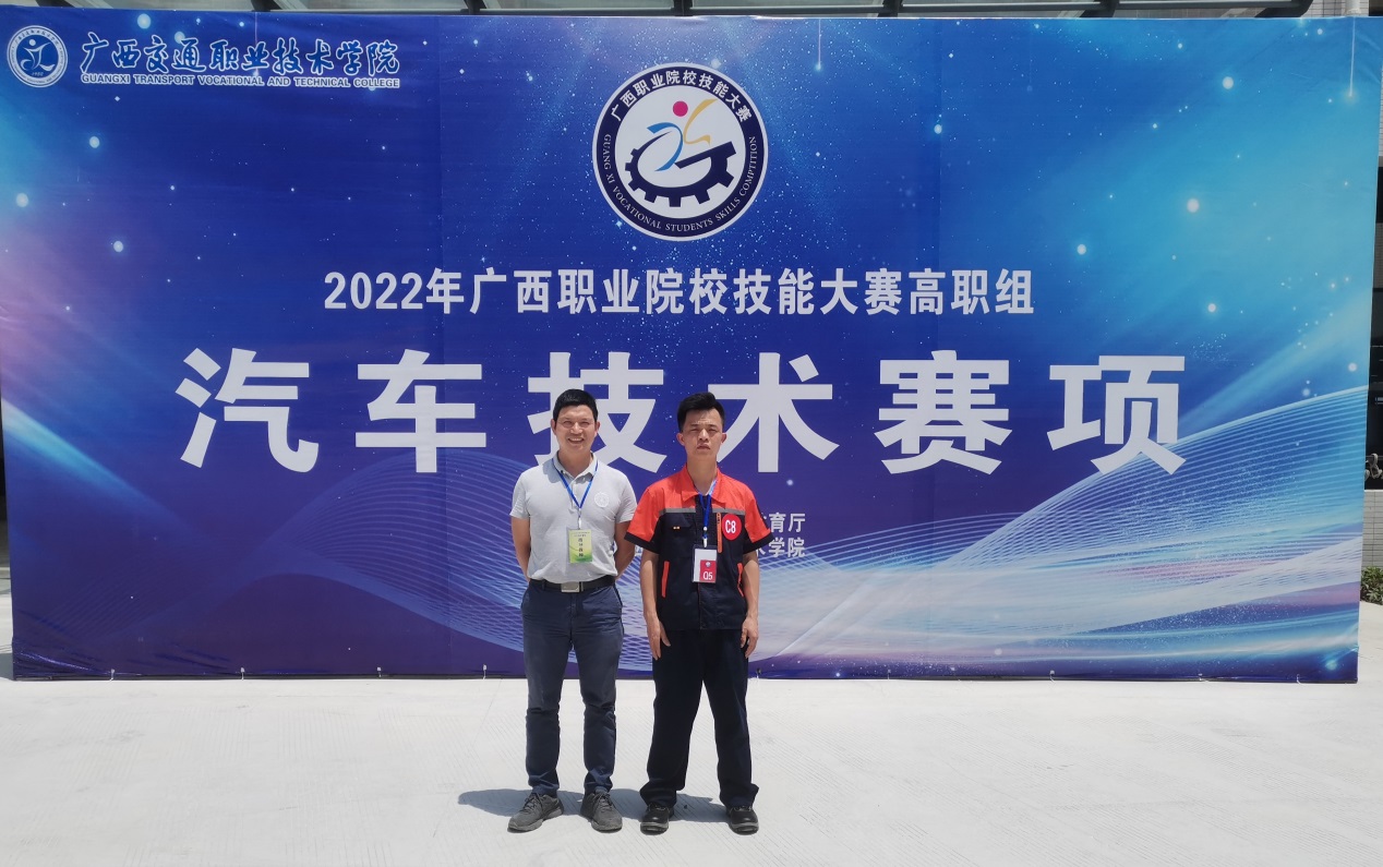 2022年广西职业院校技能大赛(高职组)新能源汽车技术与服务赛项比赛于2022年4月9-10日在广西交通职业技术学院举行,我交通工程学院熊继芬、孔泽慧老师指导的苏伟豪、刘又珲两位选手荣获除东...