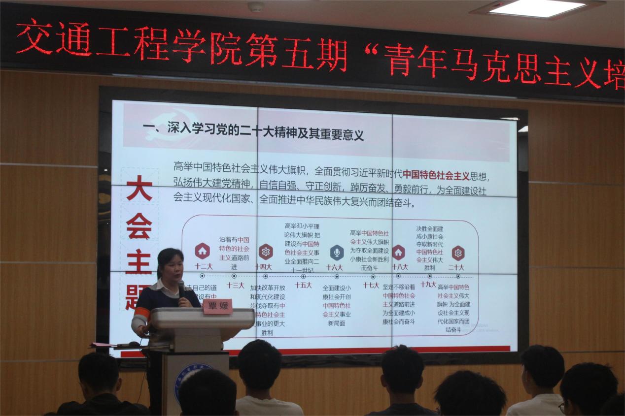 10月20日下午,交通工程学院第五期“青马工程”陶冶班第一单元专题报告在学校博远楼2号报告厅举行。交通工程学院党委副书记覃媛、学院团委书记史孝花、学院第五期“青马工程”陶冶班培训学员...