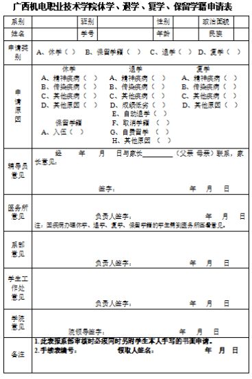 休学、退学、复学、保留学籍申请表修