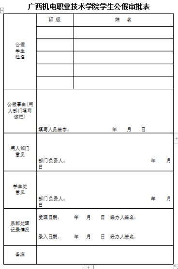 学生公假审批表