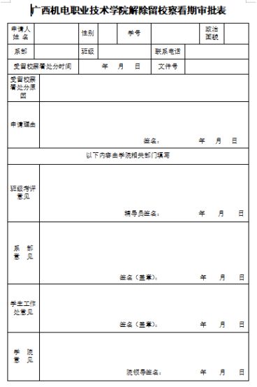 解除留校察看期审批表