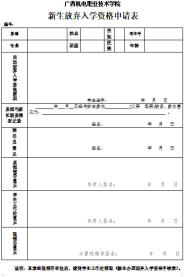 新生自动放弃入学资格申请表