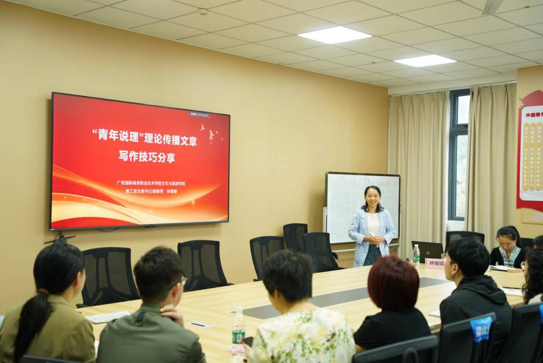 近日,为积极备战学校举办的首届大学生党的创新理论宣讲大赛,切实提升我院师生的理论素养与宣讲能力,学院党委精心组织了赛前培训会。广西国际商务职业技术学院文化与旅游学院教工党支部书记林媛媛老师受邀到场指导。来自学院各班级的二十五支参赛队师生参加了培训会,学院党委书记黄妩出席并主持会议。