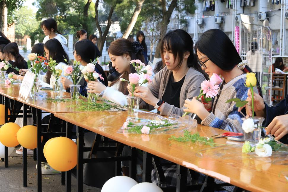 为进一步丰富宿舍文化生活,深化美育与劳动教育,营造和谐温馨的校园氛围,学院“追光者”辅导员工作室近期在女生宿舍沁宁园举办“花韵传情”插花艺术体验活动。活动以宿舍为单位组队参与,通过沉浸式体验传统插花艺术,引导学生感悟美、创造美,增强宿舍成员的融洽和团队协作意识与文化认同感。