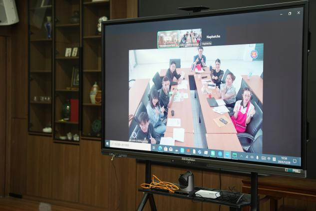 2025年12月29日上午10时,学院与泰国佛统职业学院国际项目交流会在线上举行。会议以学校国际交流中心为中方会场,双方围绕2026年4月拟实施的中泰职业教育人才能力提升研学项目深入磋商。学院院长付瑶、副院长谭业、教师钟柳及泰国佛统职业学院副院长Mr. Teodsak Kaewkongka、中文教师王苹等双方项目核心成员参加会议。
