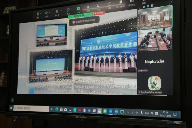 此次线上交流会进一步夯实了两校在职业教育领域的合作基础。据悉,该项目是积极响应“一带一路”倡议、深化中泰职业教育交流合作的重要实践,计划通过为期11天的沉浸式研学培训,帮助泰国师生提升中文应用能力,深入体验中国(广西)文化与职业技能,推动两校在人才培养、师资交流和项目合作等方面实现常态化、长效化发展。