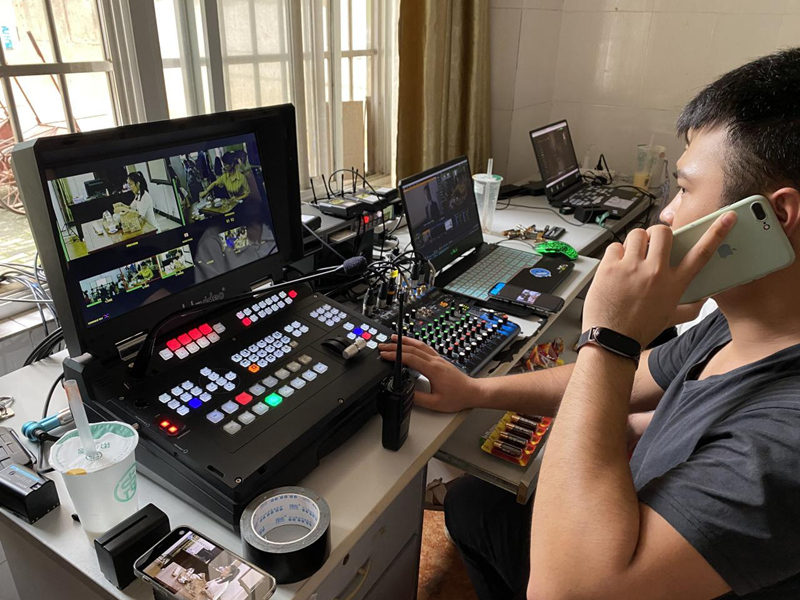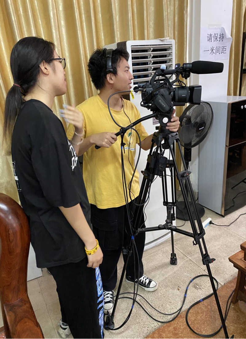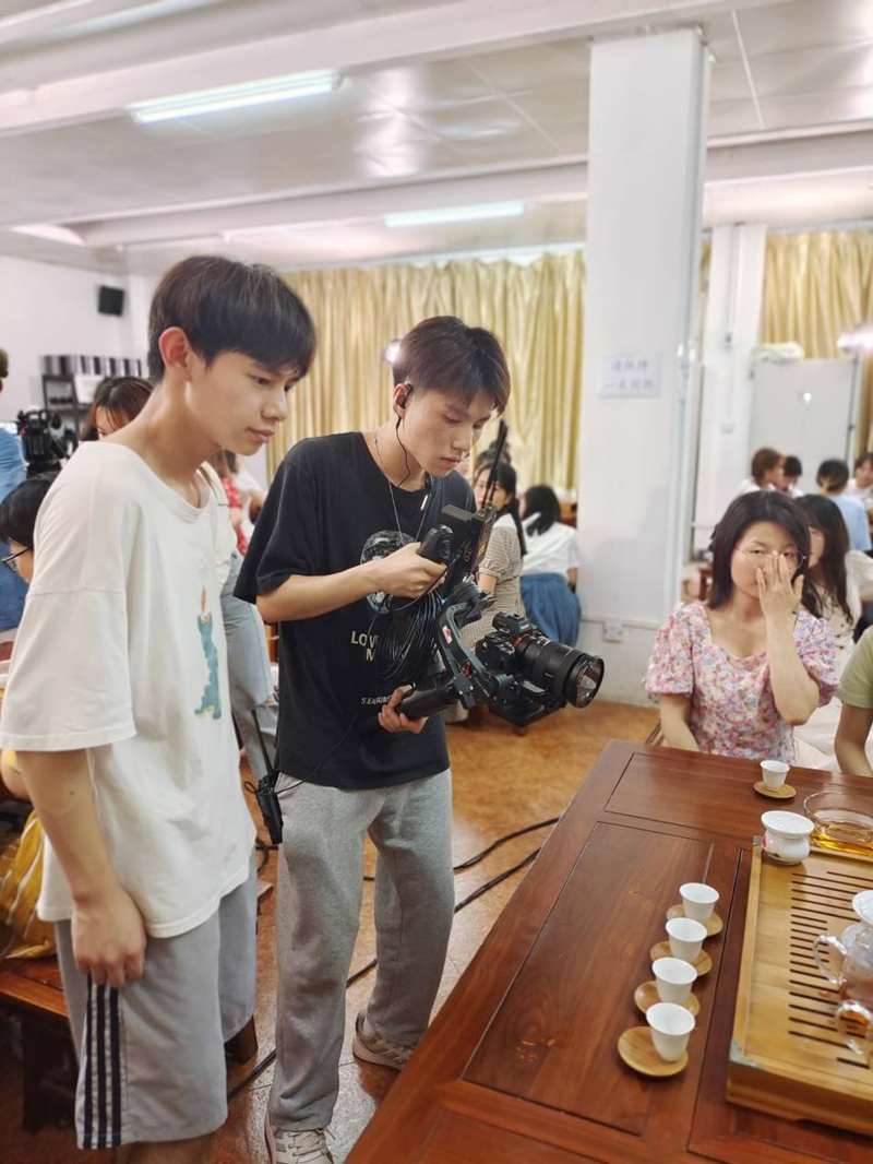 直播活动以六堡茶文化体验为主题,摄影摄像专业全体学生参与了此次直播体验的活动方案设计、拍摄脚本、主播串词以及拍摄工作。活动当天,线上观看的人数达1500人。许多社区居民和到场师生跃跃欲试,都希望过一把主播瘾。
