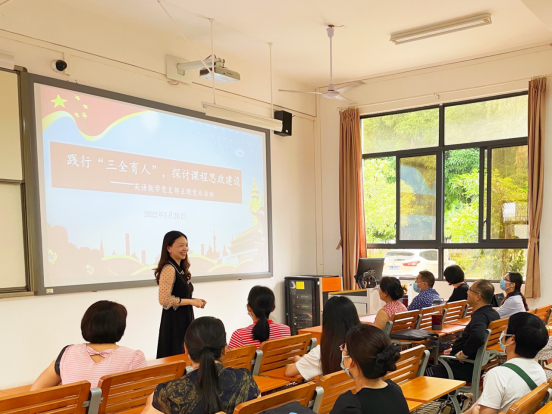 为全面贯彻并践行中共中央、国务院《关于加强和改进新形势下高校思想政治工作的意见》提出的坚持全员全过程全方位育人的要求,英语数学党支部于2022年5月20日开展践行“三全育人”,探讨课程思政建设主题党日活动。