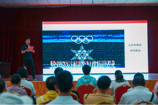 卓倪从我国⼈均体育场地⾯积和常参加体育锻炼⼈数⽐例、体育⽂化建设、体育对外交往、全⺠健身运动和全⺠健身条件、竞技体育综合实⼒、第⼀届全国学⽣(⻘年)运动会等6个方面进行阐述,结合国家在奥运会的体育拼搏精神、学校体育课程建设和学生体育锻炼情况,强调了要凝心聚力狠抓落实,立足岗位推动工作,奋力开创体育工作建设。