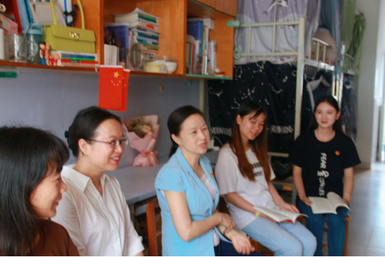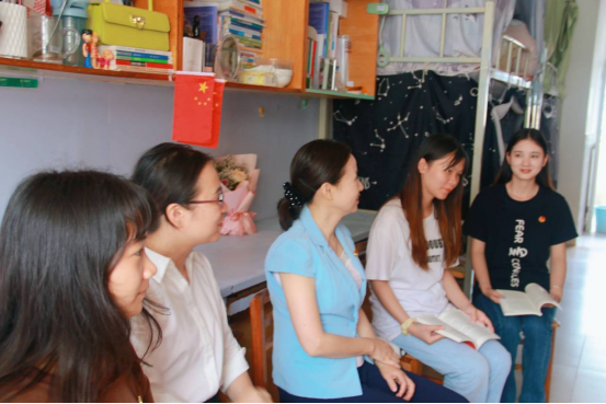 授牌仪式结束后,林华书记来到学生示范宿舍,给入党积极分子、团支书、优秀学生干部示范宿舍的同学赠送了党团建设的学习书目,并在示范宿舍与同学们开展了一场别开生面的师生读书分享会,林华书记围绕本次主题教育的背景、要求、清廉学校建设等话题与同学们进行了深入的交流。同时,还就学生宿舍管理、学生服务、学生实习、就业需求等内容开展实地调研。