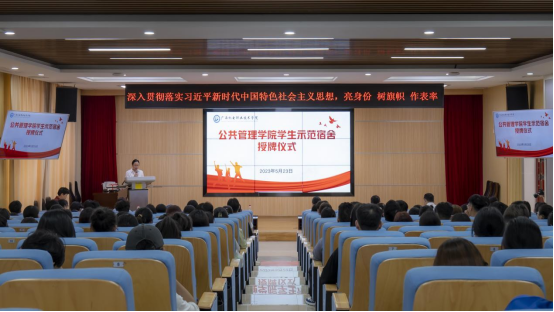 为深入学习贯彻习近平新时代中国特色社会主义思想,加强青年组织政治引领,强化宿舍育人功能,5月23日下午,我院在第二学术报告厅举行入党积极分子示范宿舍、团支书示范宿舍、优秀学生干部示范宿舍创建、授牌仪式。学校党委委员、纪委书记林华、公共管理学院党委、领导班子成员参加活动并为示范宿舍授牌。