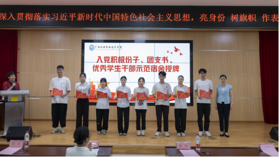 授牌仪式上,学院党委书记梁金凤强调,学生示范宿舍创建是学院全体师生学习贯彻习近平新时代中国特色社会主义思想主题教育的重要抓手,是深入开展“党建带团建”、推动学院“三全育人”工作走深、走实的前沿阵地。希望获授牌的入党积极分子、学生干部一定要切实增强责任感和使命感,自觉做到亮身份、当先锋、树形象、作表率,努力做到守好一张床位、带动一个宿舍、辐射一个班级,以实际行动贯彻落实党的二十大精神,为推动学校高质量发展作贡献。