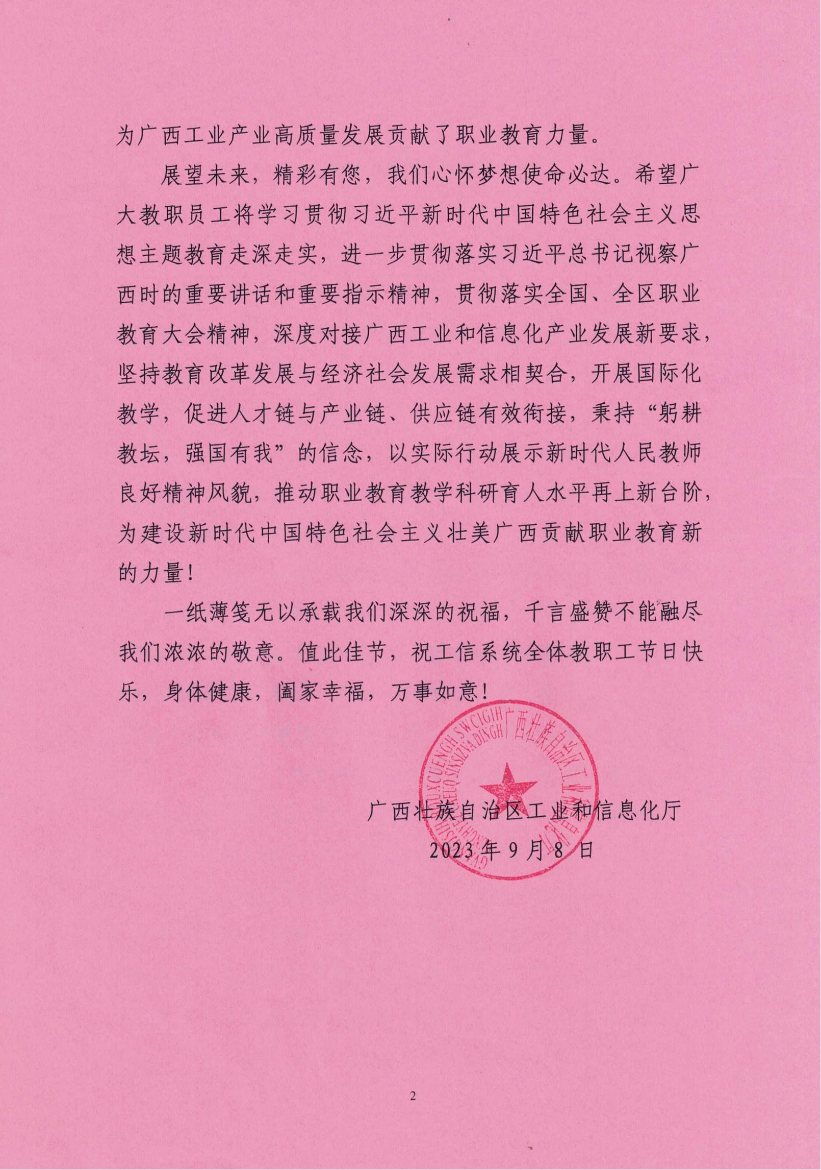 自治区工业和信息化厅致全区工信系统教职工的慰问信