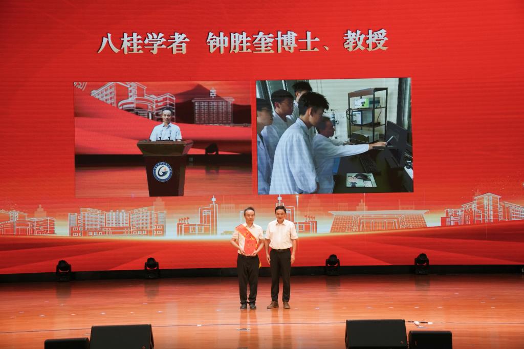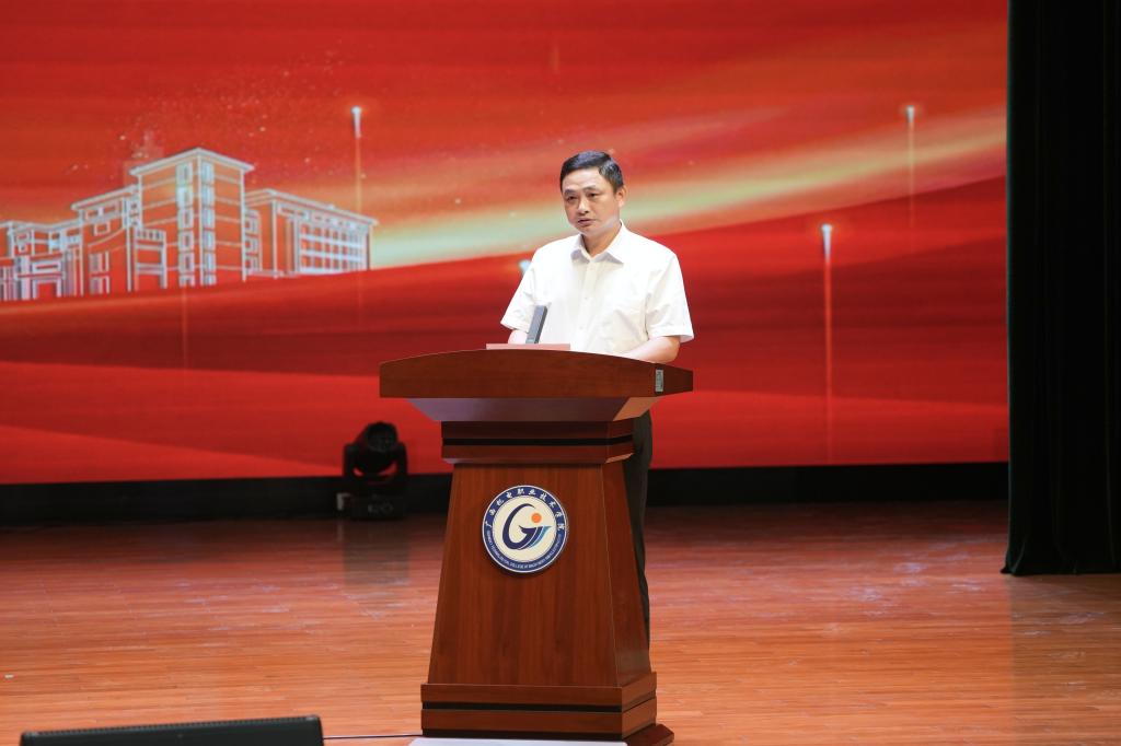 9月13日下午,学校在弘毅楼大礼堂召开2025年人才工作暨“三全育人”表彰大会,深入学习贯彻习近平总书记关于做好新时代人才工作的重要指示精神和对广西工作论述的重要要求,全面落实中央和自治区党委有关人才工作部署,系统总结学校人才工作成绩与经验,分析面临的新形势新任务,部署今后一个时期的重点举措,动员全校上下统一思想、凝聚共识、坚定信心、鼓足干劲,开创学校人才工作新局面。学校党委书记黄小敬出席会议并讲话,学校领导程云燕、黎盛寓、刘捷、黄振宣、林胜,校长助理秦培林出席。全体教职员工、荣休教师和学生代表参加大会。大会由学校党委副书记、校长吴世先主持。