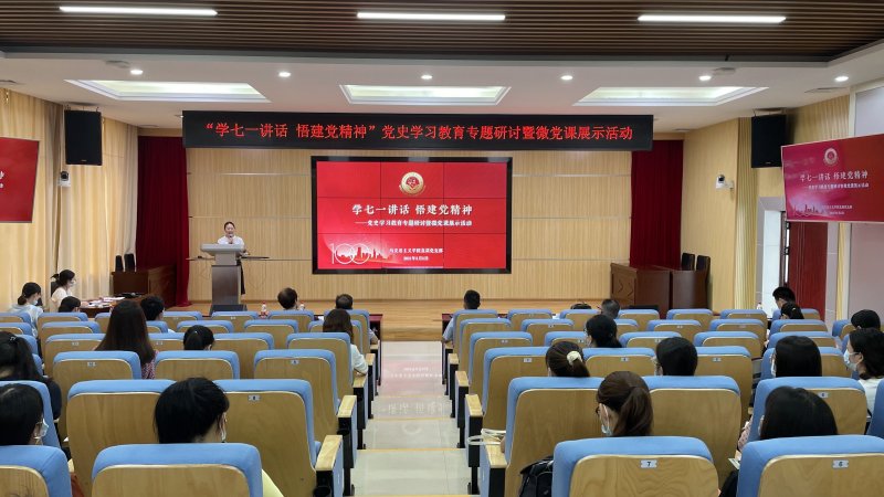 8月5日上午,马克思主义学院举办“学‘七一’讲话 悟建党精神”党史学习教育专题研讨暨微党课展示活动。新入职马院的13位教师围绕习近平总书记在庆祝中国共产党成立100周年大会上的讲话,依次进行10分钟微党课展示。所有作品展示后,马克思主义学院院长黄振宣教授以“理想信念的作用”为题上进行示范课展示。随后,马克思主义学院副院长韦文荣教授点评此次微党课展示活动。经过投票,韦秋禄、覃彪、翁明娟、赵媛、黄悦铧的微党课排名前5。
