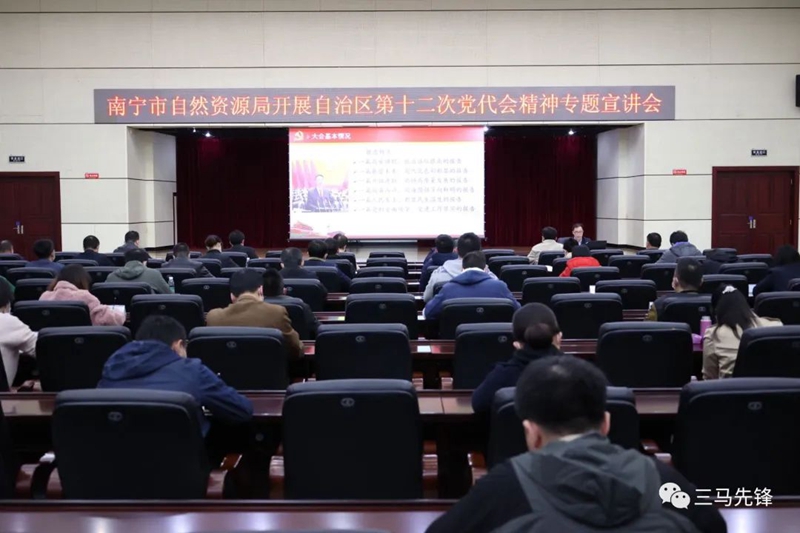 近日,南宁市宣讲团成员、awc77万象城官网马克思主义学院韦文荣教授深入南宁市自然资源局宣讲自治区第十二次党代会精神,会议由三级调研员王冬初主持,南宁市自然资源局党政领导、局属各科室、各分局负责人,局属各事业单位、各代管企业党政负责人,党员代表、干部职工参加了会议。