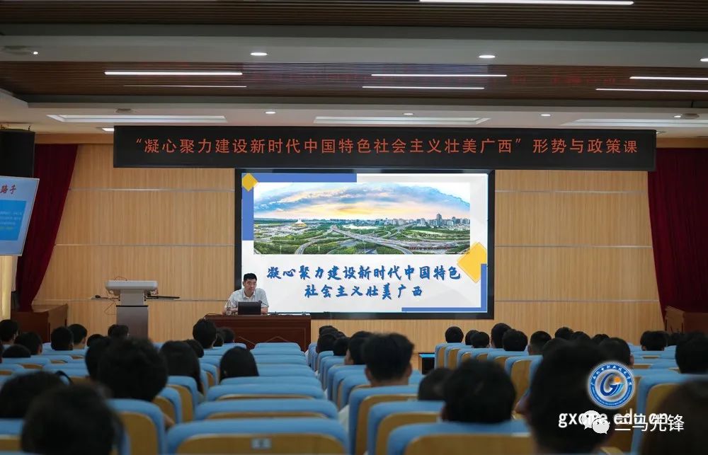 课程中,黄小敬书记从“牢记领袖嘱托,凝心聚力建设新时代中国特色社会主义壮美广西”“党的十八大以来广西经济社会发展成就回顾”“建设新时代中国特色社会主义壮美广西的战略举措”等方面,深入浅出地阐述了以习近平同志为核心的党中央对广西工作的重要指示批示精神,系统回顾了党的十八大以来广西经济社会发展的成就,论述了新时代广西经济发展的机遇,全面分析了建设新时代中国特色社会主义壮美广西的战略举措。黄小敬书记生动详实的讲课赢得了在场学生的点赞,同学们纷纷表示受到极大鼓舞,要以踔厉奋发的青春姿态积极投身壮美广西建设,以优异成绩迎接党的二十大胜利召开。