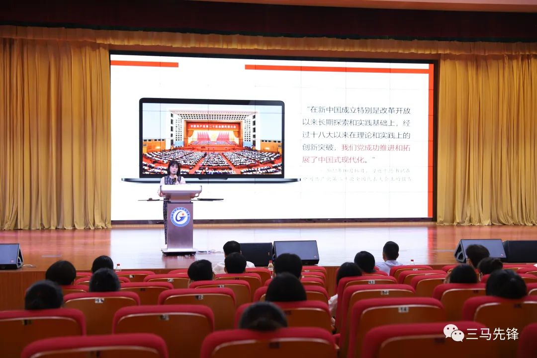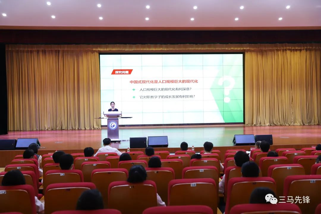 宣讲团成员林子琳以《解码人口规模巨大的现代化》为题,聚焦党的二十大报告“中国式现代化是人口规模巨大的现代化”的阐述,结合职教学子的利益关切,解析十四亿多人口整体迈进现代化的内涵,教育引导学生通过夯实技能本领、磨砺技能成才、投身技能报国,保持成长耐心,行而不辍,努力成为服务于中国特色社会主义建设事业的高素质技能型人才。