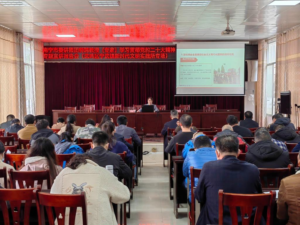 当前正值全国上下掀起学习宣传贯彻党的二十大精神的热潮之际,我院石月皎、崔敏、黄春梅、韦家旭四名教师作为南宁市宣讲团特聘教授(专家)成员,于近期赴南宁市多个城区基层单位开展党的二十大精神理论宣讲,为当地党员干部送党课、传理论。