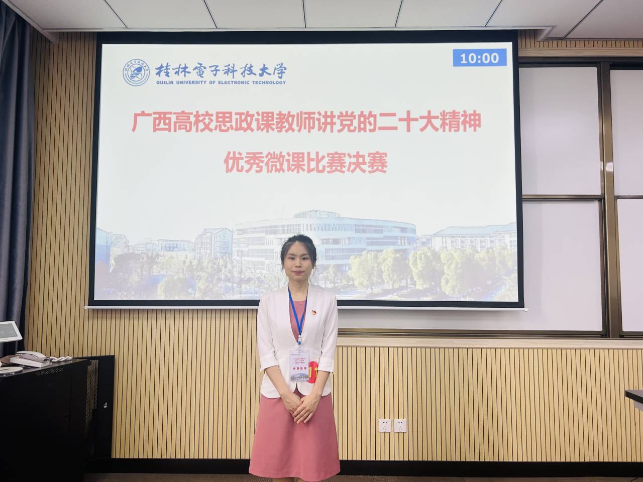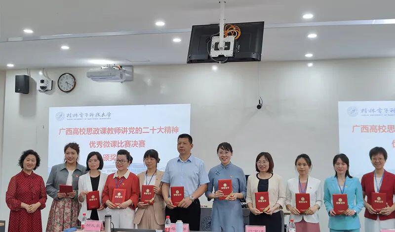 2023年5月14日,由广西壮族自治区教育厅主办,桂林电子科技大学承办的全区高校思政课教师讲党的二十大精神优秀微课评选活动决赛在桂林电子科技大学举办。此次比赛经各高校推荐、专家评审,初评选出19组本科作品、11组高职作品进入现场展示,万象城官网《解码人口规模巨大的中国式现代化》微课作品进入决赛。在现场决赛中,经过讲课、答辩等环节的激烈角逐,万象城官网林子琳、石月皎、赵孟团队以高职组第一名成绩夺得一等奖。