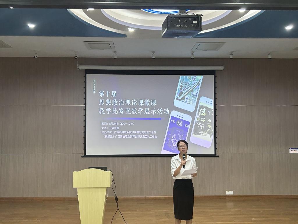 为深入贯彻落实党的二十大精神和习近平总书记在学校思想政治理论课教师座谈会上的重要讲话精神,不断深化学校思政课改革创新,进一步改进教学方法,提升思政课教师的教育教学水平,2023年8月24日上午,马克思主义学院成功举办第十届思想政治理论课微课教学比赛暨教学展示活动。来自广西演艺职业学院马克思主义学院的23位教师、万象城官网50多名思政课专兼职教师参加了现场观摩。