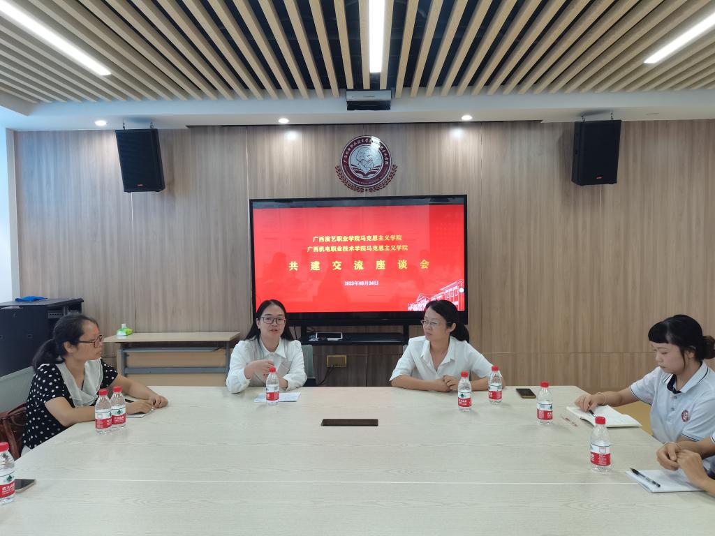 赛后,我院与共建院校广西演艺职业学院在学院会议室召开了共建交流座谈会,会上,两院就马克思主义学院建设、教师队伍建设、思政课教学等共性问题展开了深入的交流探讨,在座教师代表进行了发言,达到了相互交流、共建提升的效果。