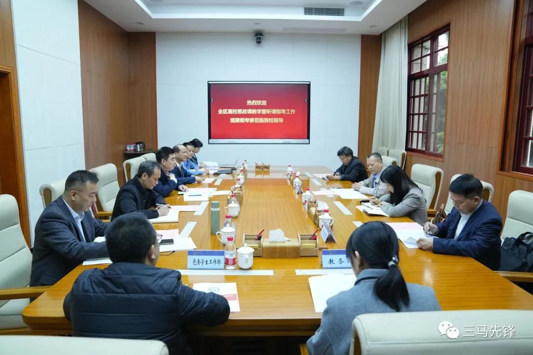12月1日上午,以百色学院党委副书记徐魁峰教授为组长,广西民族大学发展规划处处长陈媛教授、广西大学马克思主义学院副院长肖安宝教授、百色学院马克思主义学院副院长韦顺国副研究员为组员的自治区高校思政课教学巡察组到我院开展思政课教学巡察暨听课指导工作。学校党委书记黄小敬、副书记陈科鹤出席工作汇报会和反馈会,学校党政办、组织部、宣传部、学工处、教务处、财务处、科研与校企合作中心、质量管理中心等部门负责人,马克思主义学院领导班子和思政课教师代表、各二级学院学生代表参加了有关会议。