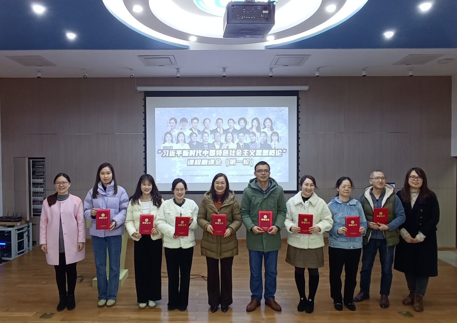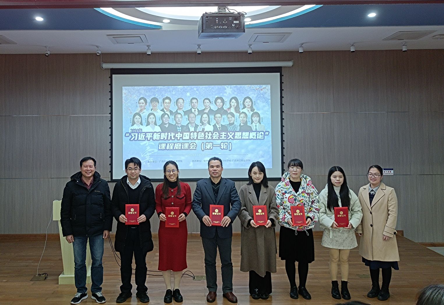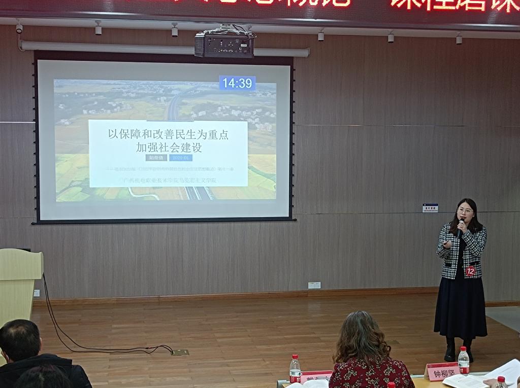 为全面提升我院思政课教师讲准讲深讲透讲活习近平新时代中国特色社会主义思想的能力和水平,增强思政课的思想性、理论性和亲和力、针对性,1月22日,我院在弘毅楼“三马讲堂”成功举办 “习近平新时代中国特色社会主义思想概论”课程第一轮磨课会。来自学校全体思政课专兼职教师及广西卫生职业技术学院、钦州幼儿师范高等专科学校、广西演艺职业学院等共建院校思政课教师共计100余人参加了观摩。