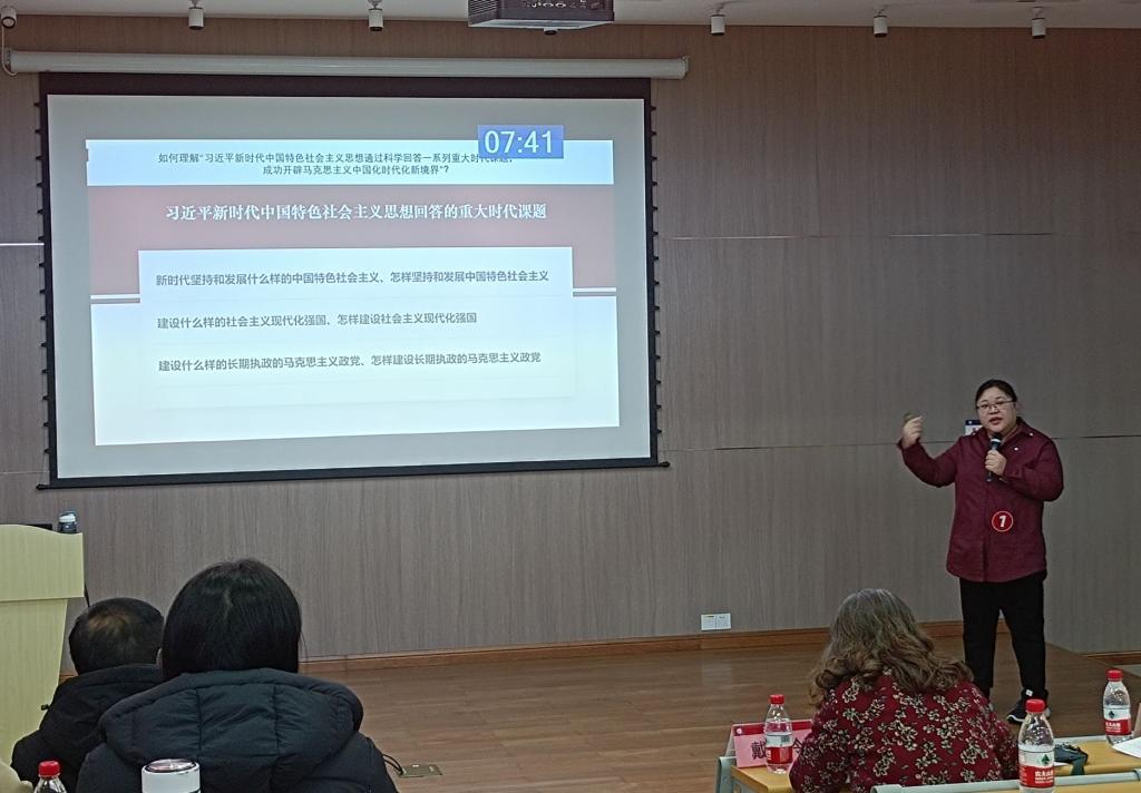 磨课会上,承担2024年春季学期“习近平新时代中国特色社会主义思想概论”课程教学任务的17位思政课教师分别从17个教学专题中自选一个教学专题,从专题特点、教学目标、教学重难点、教学方法、教学过程等方面进行说课。