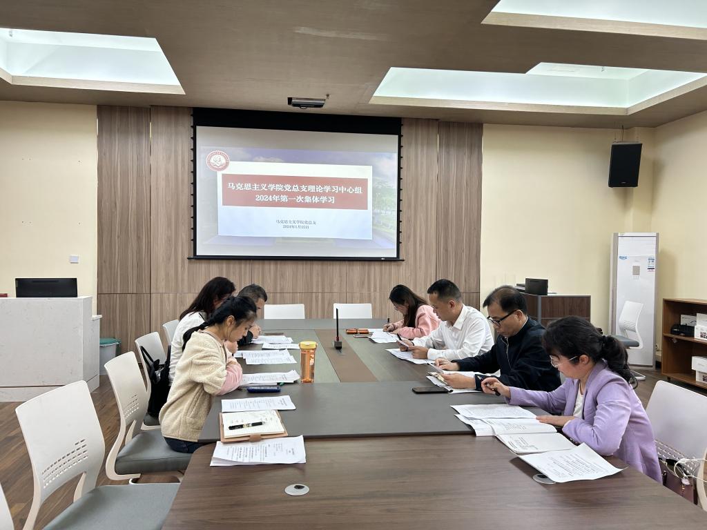 1月15日,马克思主义学院党总支在学院阅览室举行理论学习中心组2024年第一次集体学习,专题学习习近平总书记在二十届中央纪委三次全会上的重要讲话精神和2024年全国教育工作会议精神,并结合马院工作实际,研究贯彻落实措施。会议由马克思主义学院党总支书记黄振宣主持,党总支委员、各支部书记、专职组织员参加。