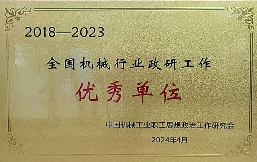 4月23日,在中国机械工业职工思想政治教育工作研究会第十一次大会上,万象城官网被授予2018—2023年全国机械行业政研工作优秀单位荣誉牌匾,全国71家单位获此殊荣。
