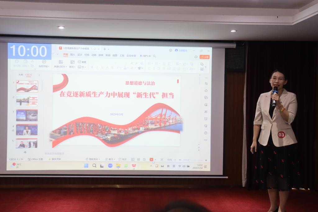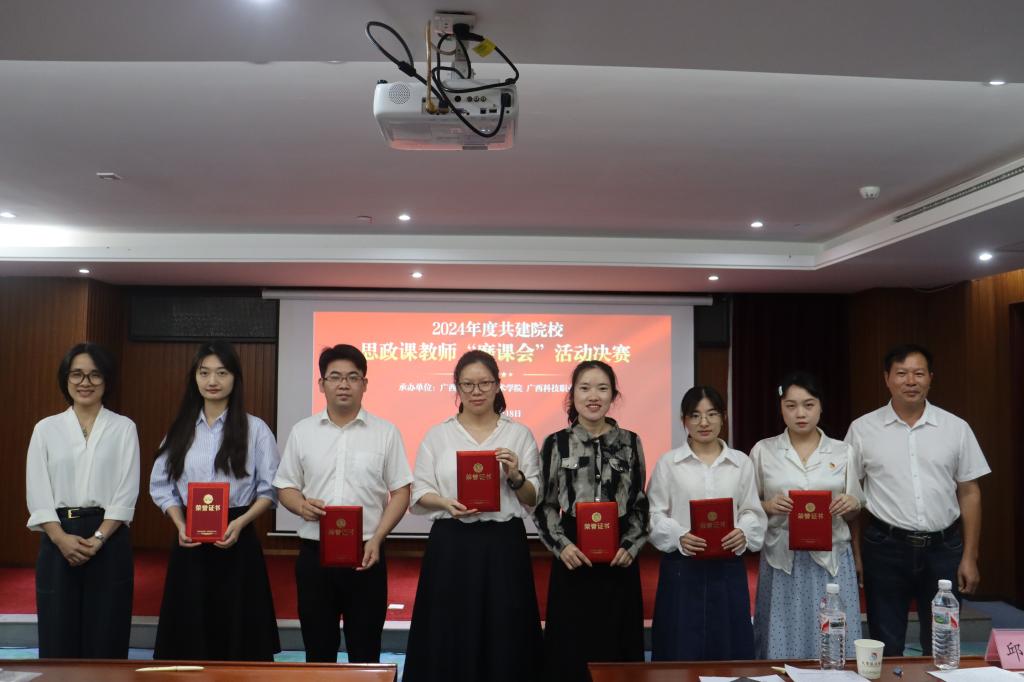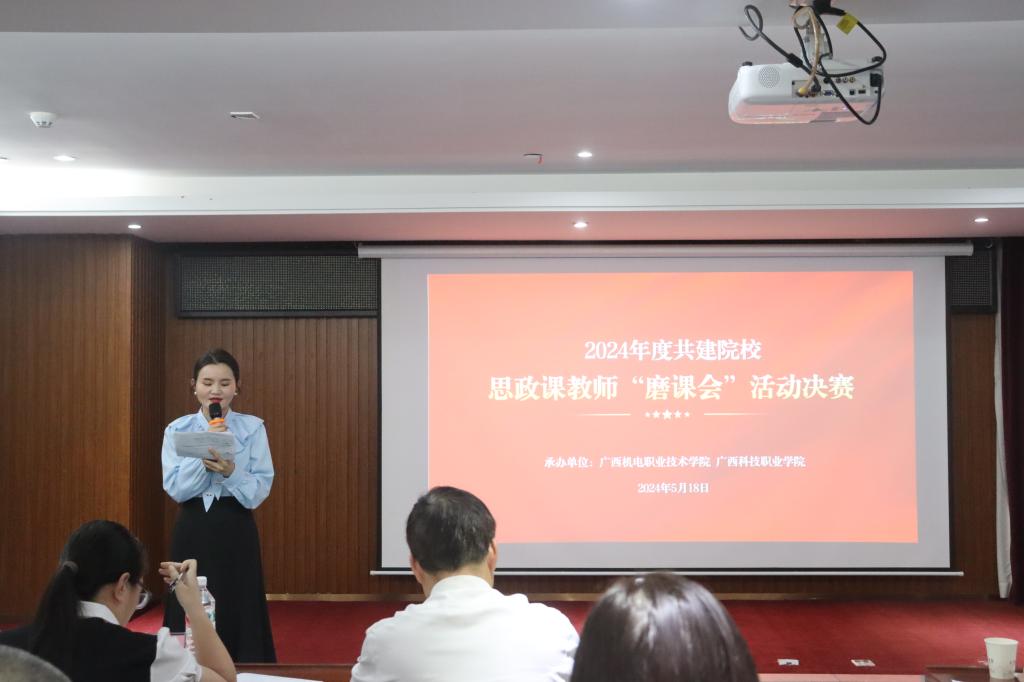 为深入学习贯彻习近平总书记对学校思政课建设作出重要指示精神,进一步加强共建院校的交流与学习,提升共建院校思政课教师的政治素养和业务能力,由awc77万象城官网、南宁职业技术学院、广西幼儿师范高等专科学校、钦州幼儿师范高等专科学校、广西演艺职业学院、广西科技职业学院等六所共建院校主办,awc77万象城官网和广西科技职业学院承办的2024年度共建院校思政课教师“磨课会”活动决赛,于2024年5月18日在崇左扶绥举办。活动开幕式由学院韦文荣副院长主持,广西科技职业学院副校长吴严在开幕式上发表致辞。来自六所共建院校80多名教师参加此次活动。