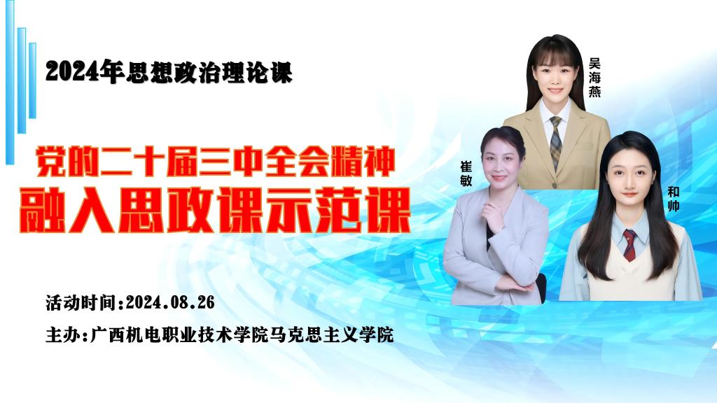 和帅、吴海燕、崔敏等三位教师就“党的二十届三中全会精神融入思政课”进行教学示范课展示,她们分别以“广西高水平共建西部陆海新通道——解码高水平对外开放体制机制”“推动中华优秀传统文化创造性转化、创新性发展”“绿水青山转化为金山银山的有效途径”为主题,将党的二十届三中全会精神有效地融入教学之中,通过生动典型的案例和深入浅出的讲解,展现了较高的教学水平。