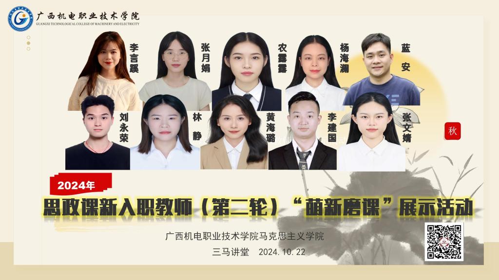 为进一步提高新入职教师的教学能力,10 月 22 日下午,学院在 弘毅楼“三马讲堂 ”开展新入职教师(第二轮)“萌新磨课 ”展示活 动。全体思政课专兼职教师参加了本次活动。
