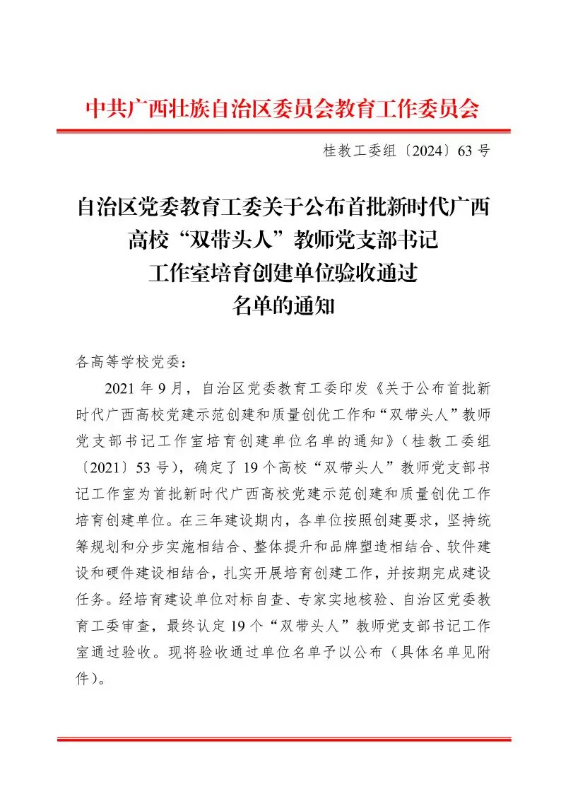 10月22日,自治区党委教育工委公布了首批新时代广西高校“双带头人”教师党支部书记工作室培育创建单位验收通过名单,万象城官网马克思主义学院“信马”党支部书记工作室顺利通过验收。