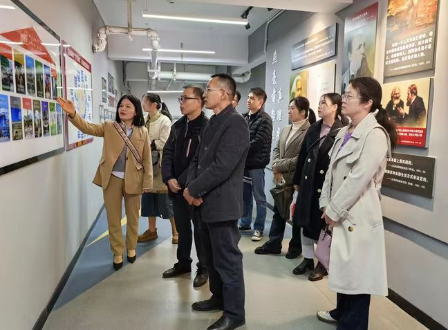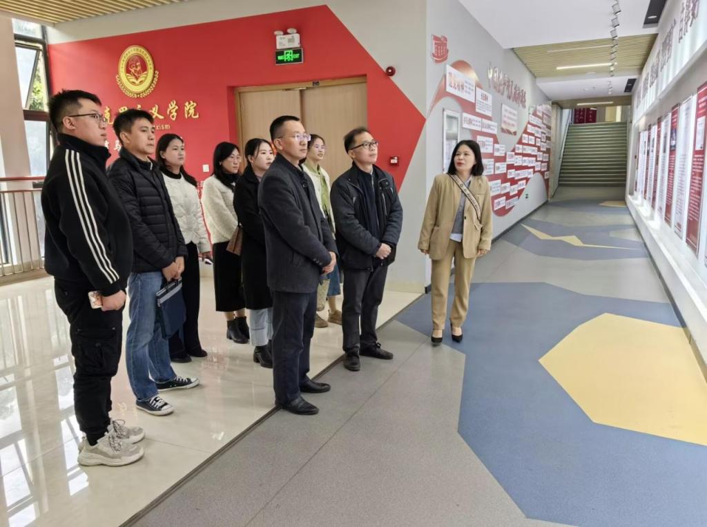 我院党委副书记韦文荣对同行们的到来表示热烈欢迎,并陪同他们参观了学院的办公场所、文化墙等。在随后的座谈会上,韦文荣副书记从党建工作、教育教学成果、科研成果、师资队伍建设等方面,详细介绍了万象城官网的思政课建设情况及2024年马院取得的一系列标志性成果。他表示,我院作为全国高职高专思想政治理论课建设副会长单位、广西高职高专院校思政课建设联盟理事长单位及全区高校特色马克思主义学院建设单位,将继续为全区高职高专院校思政课教师交流搭建更多平台。李次春院长对我院的热情接待表示感谢,并介绍了广西电力职业技术学院马克思主义学院在教学、科研、党建等方面的发展情况。他提出,希望双方能进一步加强交流合作,共同推动思政课建设的发展。